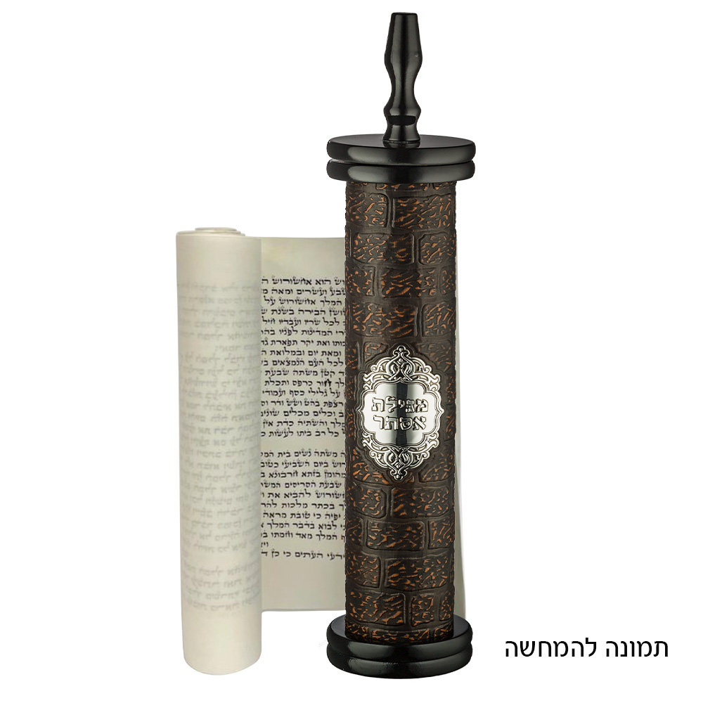 בית מגילה ספרדי קוטר 9 ס"מ עץ + פיו כותל עם פלקטה עבור קלף 15 ס"מ