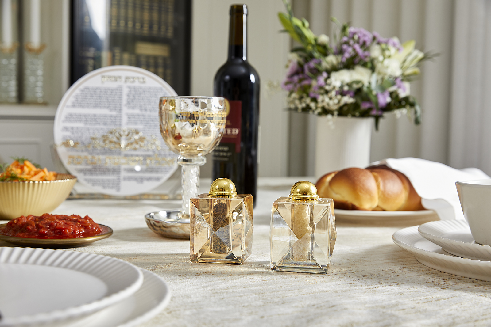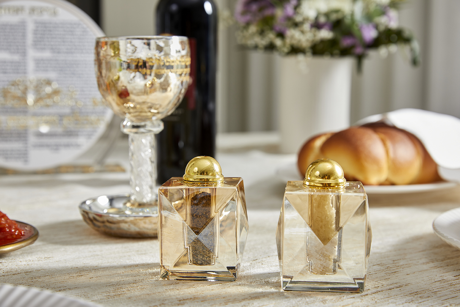 [[ זוג מלחיות קריסטל זהב 7 ס"מ