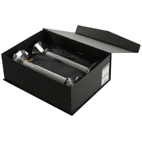 [[ זוג פמוטי קריסטל מהודרים עם יהלומים לבנים וקנים כסף 22.5 ס"מ