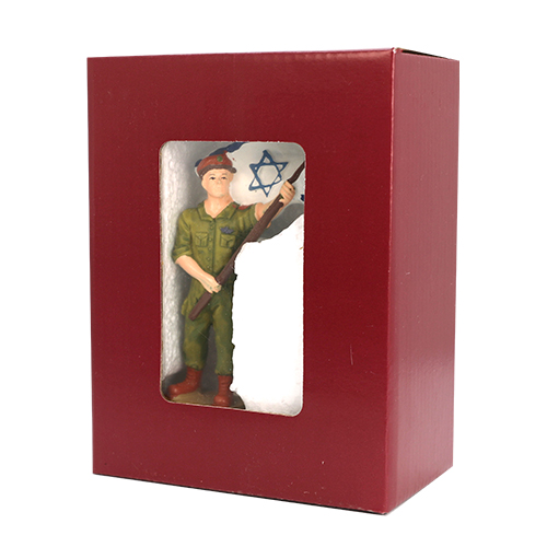 חייל צהל פוליריזן עומד על במה עם דגל 11 ס"מ