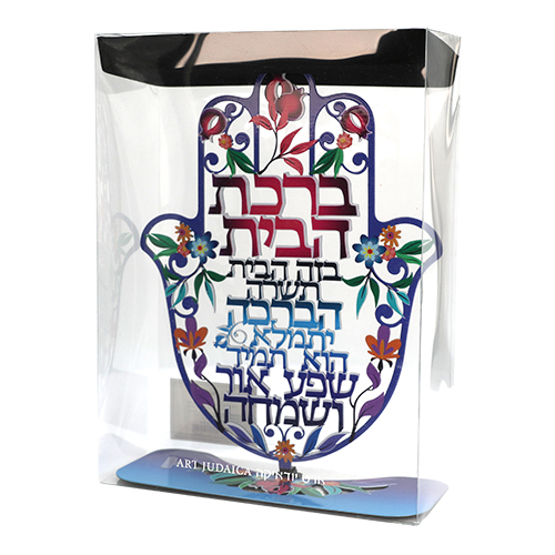 חמסה "פירחוני" חיתוך לייזר עם בסיס, ברכת הבית עברי
