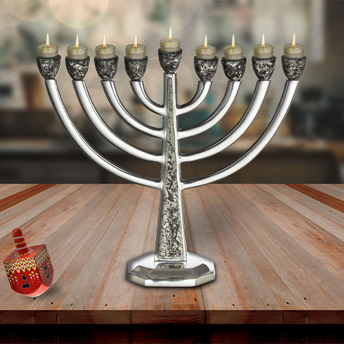 חנוכייה אלומיניום קנים שיש לבן 27X29 סמ