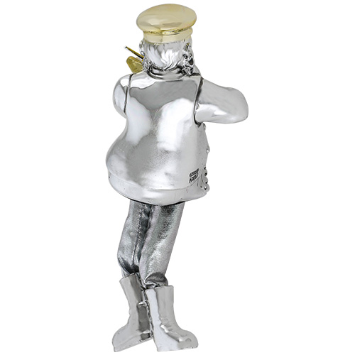 חסיד יושב מפוליריזן מוכסף עם רגלי בד כסף מנגן