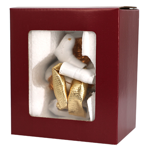 [[****חסיד יושב מפולירייזן לבן עם רגלי בד זהב 25 ס"מ מנגן בתוף