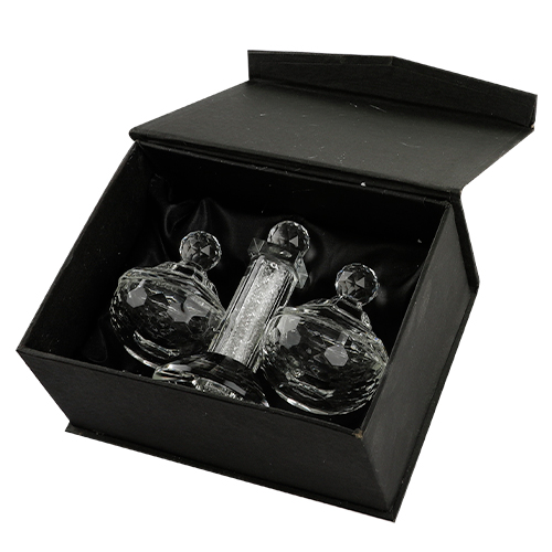 מלחייה קריסטל עם שבבי זכוכית בגוון כסף ומכסה 12 ס"מ