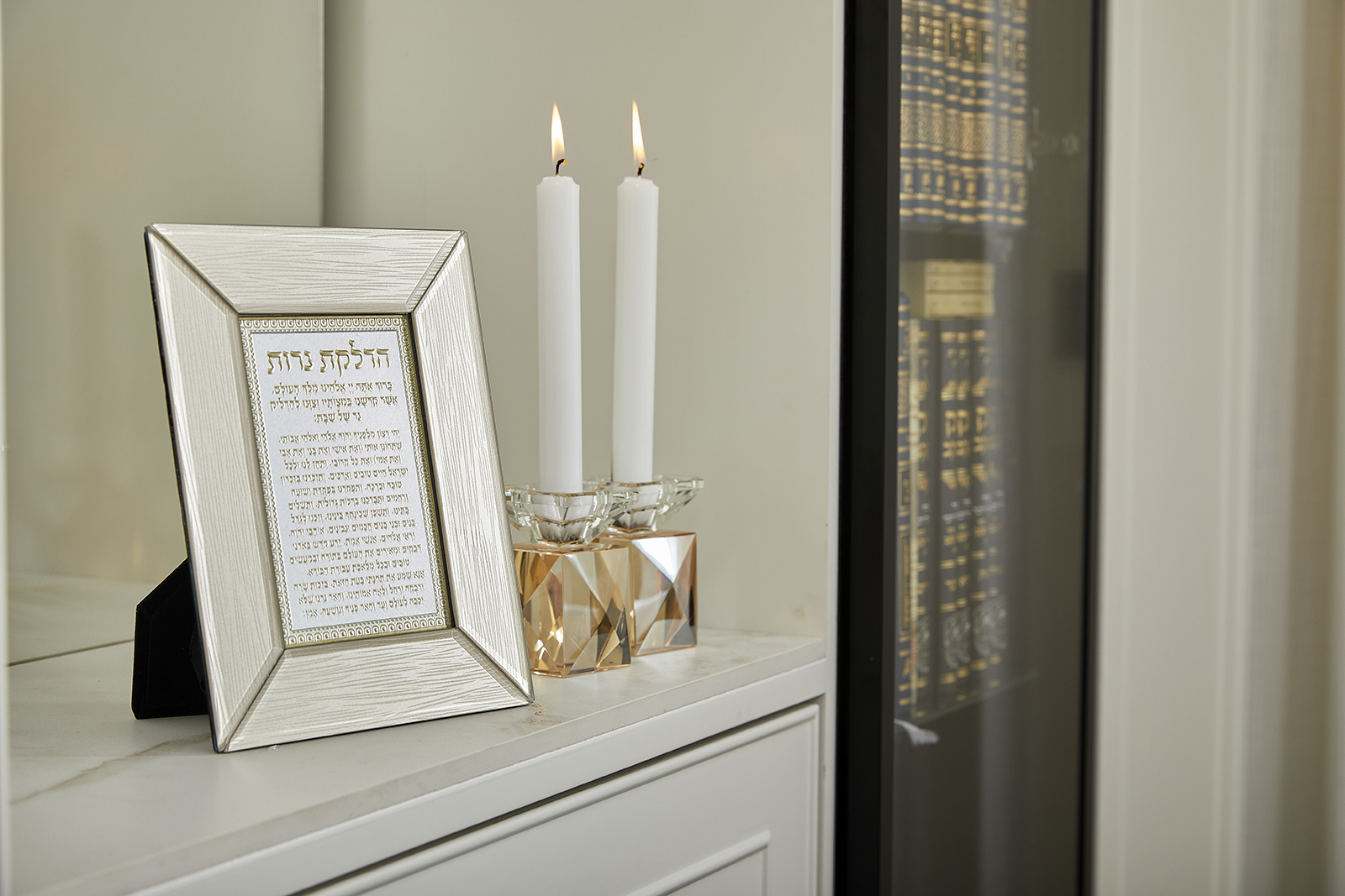 מסגרת זכוכית חומה מהודרת ה.נרות 22X18 ס"מ