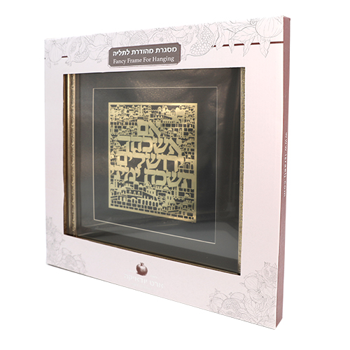 מסגרת ממוסגרת לתלייה עם פלקטה זהב 42×43 ס"מ- אם אשכחך ירושלים