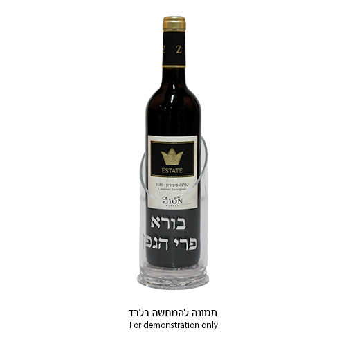 [[מעמד לבקבוק יין מאקריליק עם אותיות בולטות נצנץ כסף 20 ס"מ