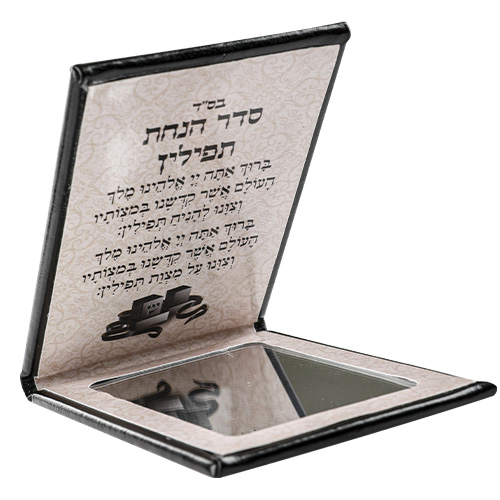 סטנד מהודר ראי להנחת תפילין עור (24) 7×10 ס"מ
