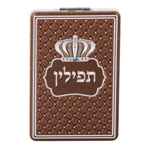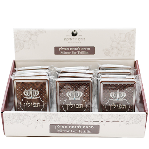 סטנד 12 יח מראה להנחת תפילין חום 6×9 ס"מ עברית