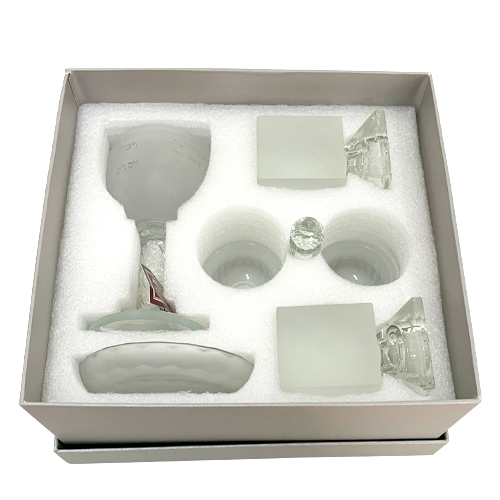 סט גביע קידוש + פמוטים + מלחייה מקריסטל מט