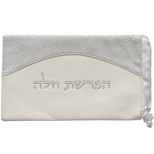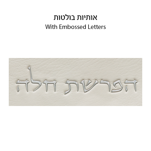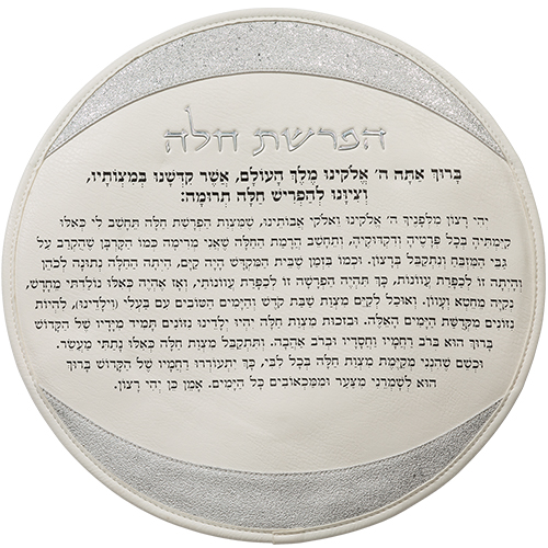 [[ סט הפרשת חלה דמוי עור לבן "אותיות בולטות" כסף 40 ס"מ