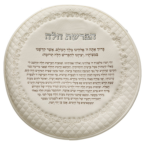 סט הפרשת חלה דמוי עור לבן "אותיות בולטות" 40 ס"מ