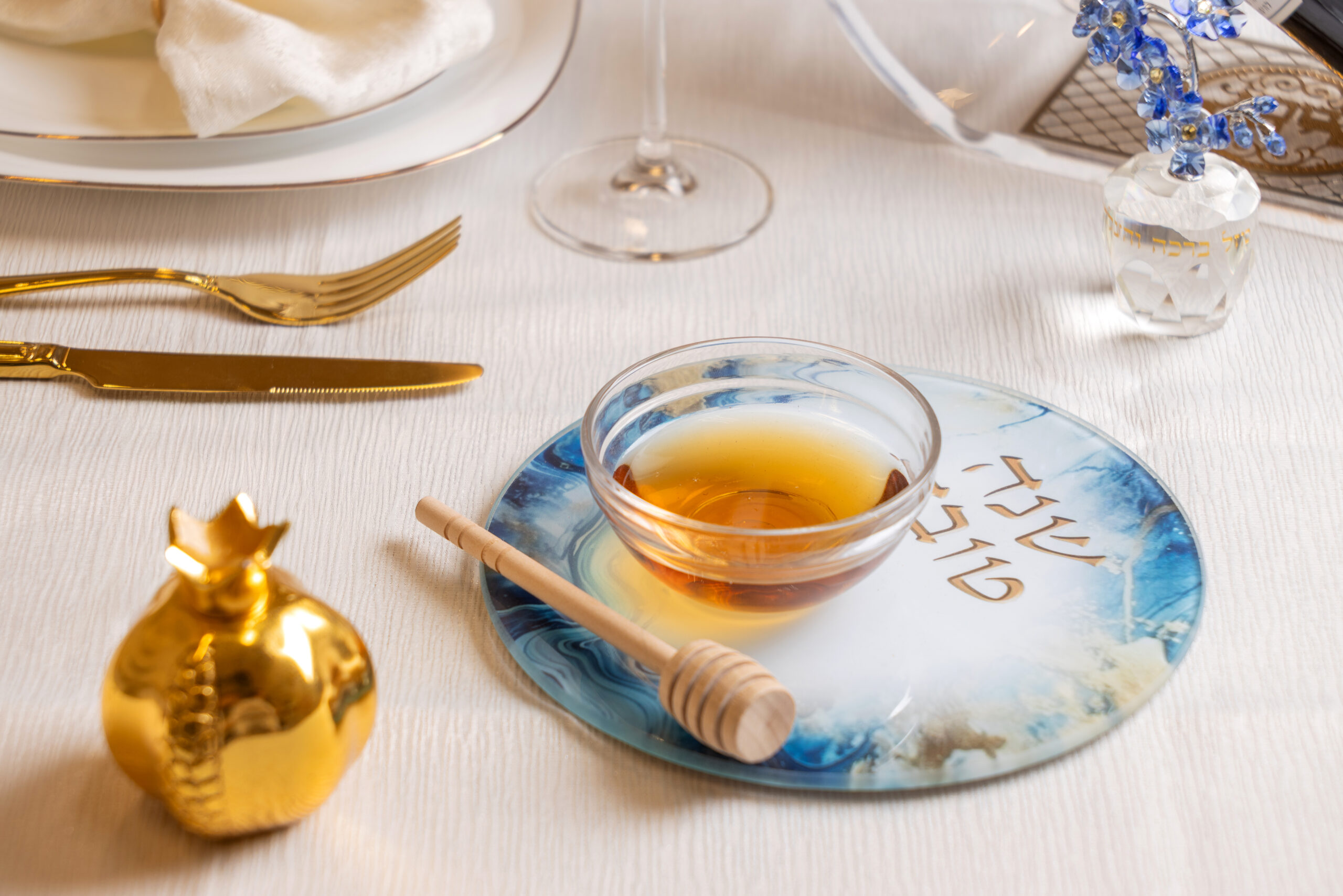 סט להגשת תפוח בדבש זכוכית בלתי שבירה 19 ס"מ