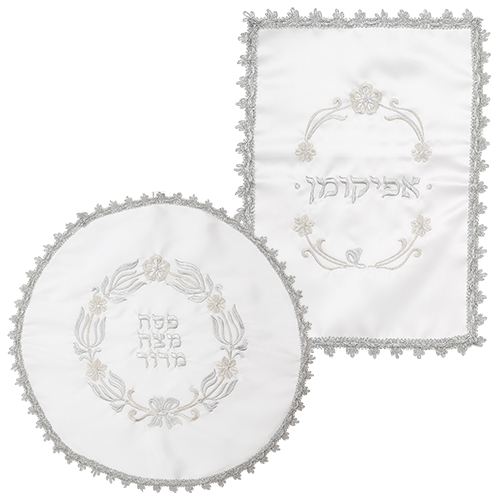 סט פסח מהודר לבן מסטן 2 חלקים כיסוי פסח ואפיקומן אריזת צלופן