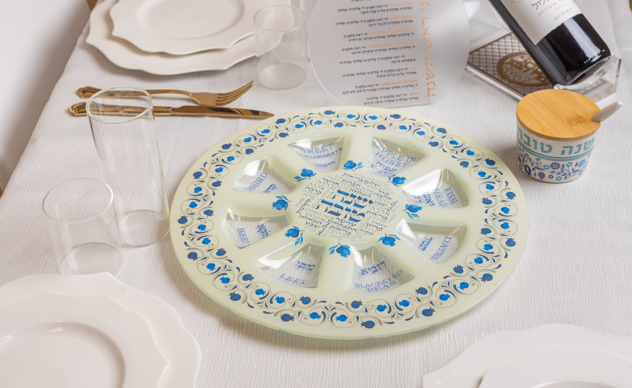 צלחת זכוכית מהודרת לראש השנה 35 ס"מ
