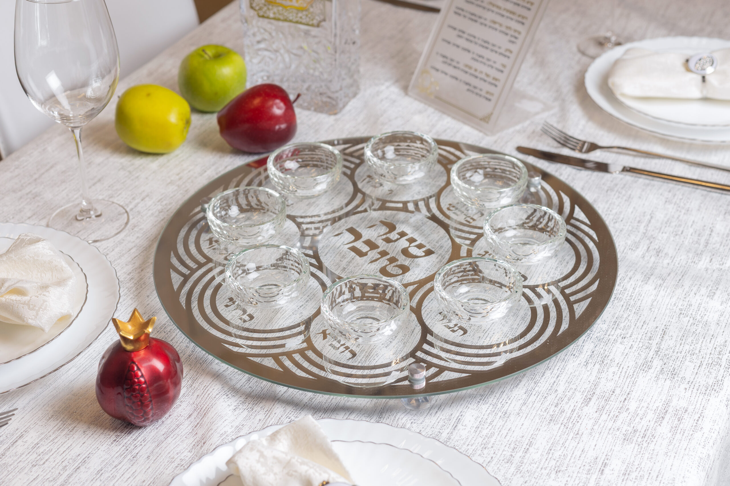 צלחת עגולה מהודרת לראש השנה מזכוכית וקריסטל 40 ס"מ
