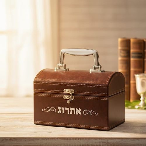 קופסא מהודרת לאתרוג דמוי עור עם ידית ומנעול 13X19