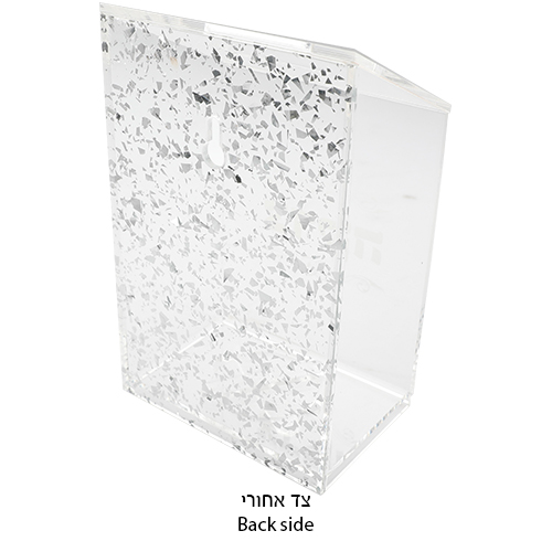 קופת צדקה אקריליק נצנצים כסף עם הדפסה 16 ס"מ
