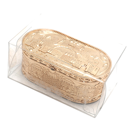 שש0410 פמוטי נסיעה זהב בקופסא עם מכסה "ירושלים" 4X9 ס"מ